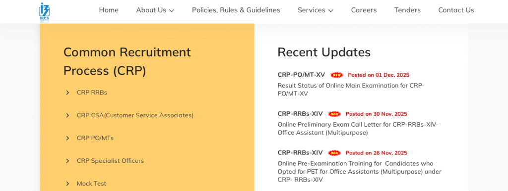 IBPS PO Mains 2025 result is now made available on the official IBPS website. To check the result, go to ibps.in, click on the “CRP PO/MT” link, and choose the relevant link for the “Common Recruitment Process for the Probationary Officers/Management Trainees” (e.g., XIV). You must need to enter your Registration Number/Roll Number and Password/Date of Birth to log in and see your result.