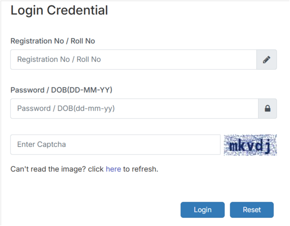 - Enter your Registration Number or Roll Number and your Password or Date of Birth in the provided fields.